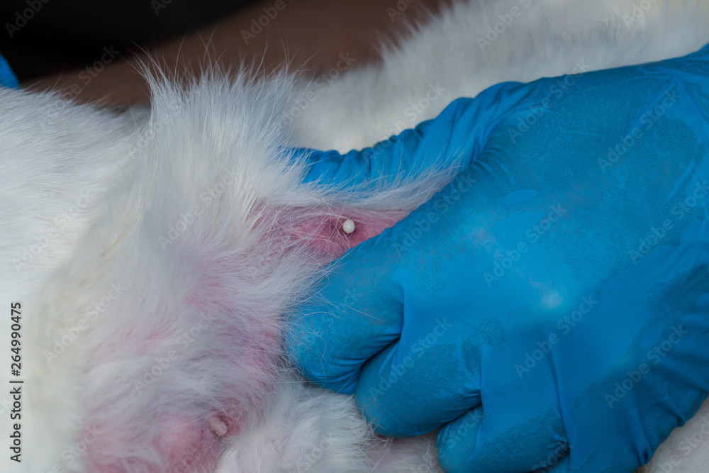 The Veterinarian Massages The Mammary Gland Of A Cat With Mastitis To Evacuate The Infected Milk Stock Photo Adobe Stock